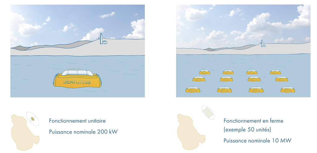 Puissance unitaire : 200 kW par flotteur.